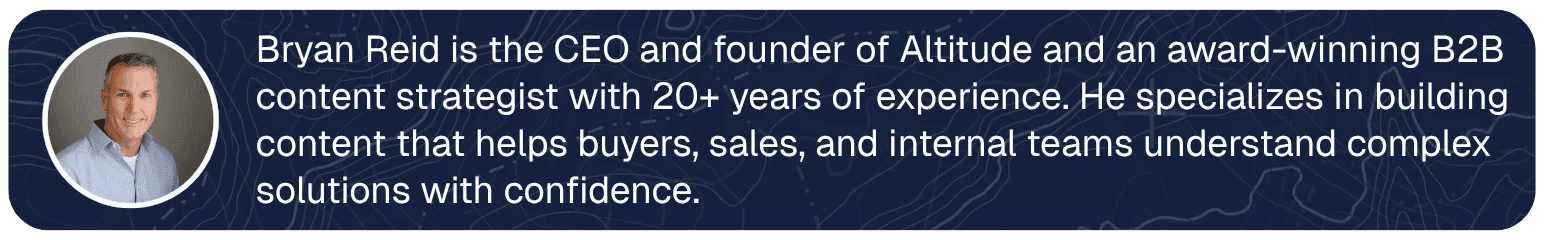 This isn’t anyone’s fault. But it does mean we’re asking prospects to do more mental work than necessary and increasing the likelihood of misalignment across the buying group.